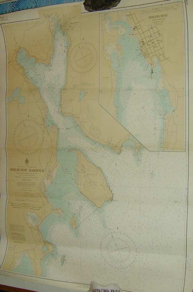 | Deskribapena | Las cartas náuticas son mapas de las aguas navegables con indicaciones de la latitud, longitud, profundidad del fondo e indicaciones de zonas con riesgos como zonas de escasa profundidad como bancos de arena o rocas, acantilados… así como puertos o faros. Hay cartas náuticas que abarcan mucho territorio y están pensadas para una navegación más genérica y otras que recogen zonas muy concretas que están destinadas para facilitar la navegación más en detalle. Esta carta náutica recoge la costa que da paso al puerto de Shelburne y su entorno, incluyendo la isla de McNutts, ubicado en la parte sur de la región de Nueva Escocia en Canadá. También incluye en la propia carta, una ampliación en detalle del puerto de Shelburne. |