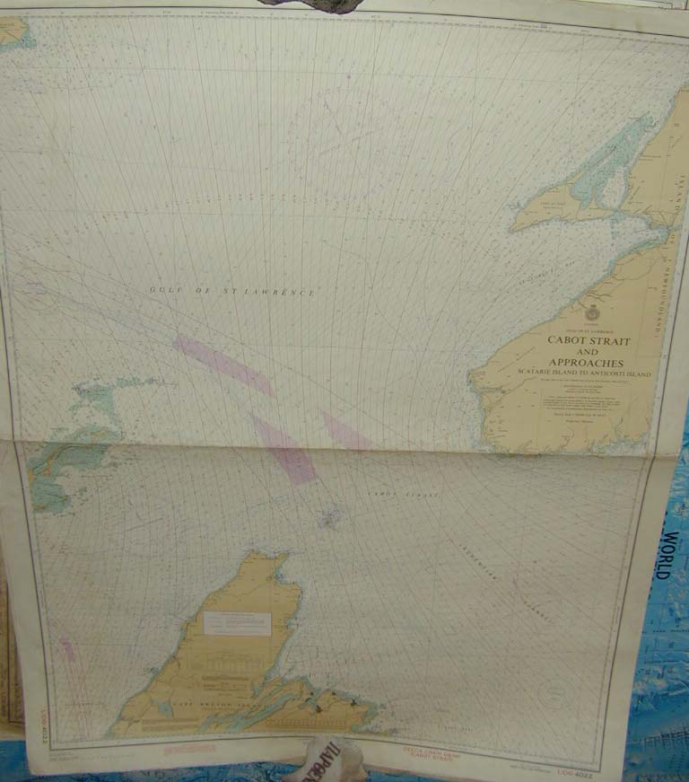 | Deskribapena | El sistema de navegación Decca era un sistema de navegación surgido en la década de 1940 basado en determinar la posición a partir de señales de radio enviadas desde repetidores en tierra y receptores a bordo de buques. Esas señales recibidas eran trasladadas a estas cartas náuticas Decca en donde aparecen una serie de curvas con las frecuencias de las señales. Este sistema tenía una precisión de 200 metros a la redonda. Esta carta náutica Decca recoge el paso del Estrecho de Cabot situado entre la isla de Cabo Breton en la región de Nueva Escocia y la isla de Terranova en Canadá. |