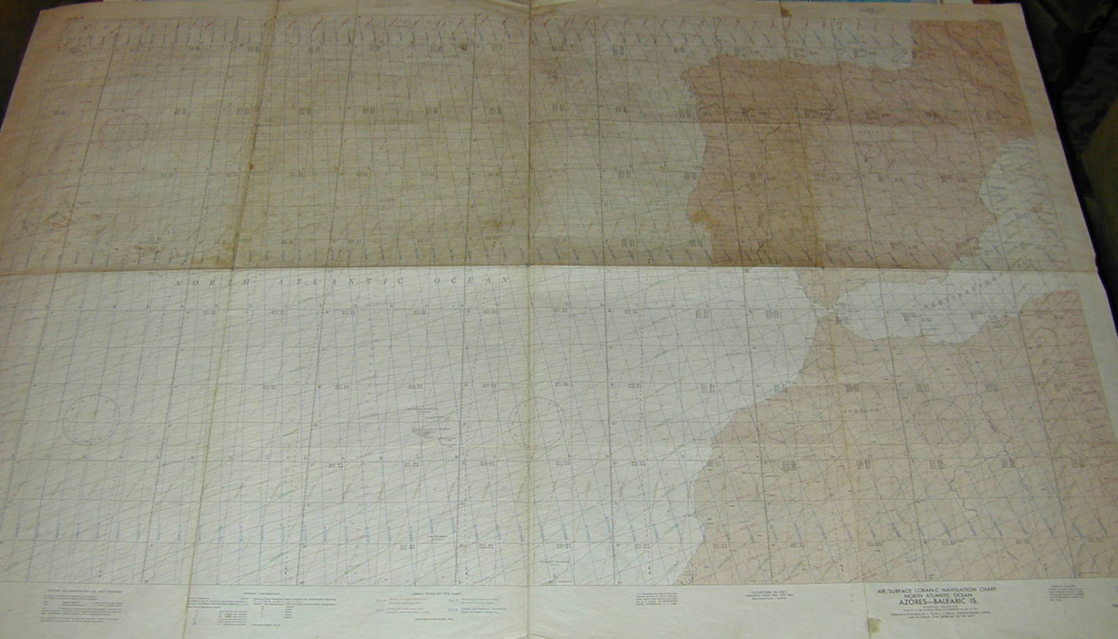 | Deskribapena | El sistema de navegación Loran C era un sistema de navegación surgido en 1974 basado en determinar la posición a partir de señales de radio enviadas desde repetidores en tierra y receptores a bordo de buques. Esas señales recibidas eran trasladadas a estas cartas náuticas Loran C en donde aparecen una serie de curvas con las frecuencias de las señales. Este sistema tenía una precisión de 180 metros a la redonda. Esta carta náutica recoge el Atlántico Norte, desde la costa sur de Islandia hasta Marruecos y desde la costa suroeste de Noruega a la costa oriental de Estados Unidos. |