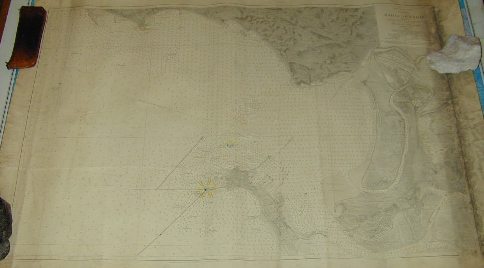 | Deskribapena | Las cartas náuticas son mapas de las aguas navegables con indicaciones de la latitud, longitud, profundidad del fondo e indicaciones de zonas con riesgos como zonas de escasa profundidad como bancos de arena o rocas, acantilados… así como puertos o faros. Hay cartas náuticas que abarcan mucho territorio y están pensadas para una navegación más genérica y otras que recogen zonas muy concretas que están destinadas para facilitar la navegación más en detalle. Esta carta náutica recoge la costa que la bahía y puerto de Cádiz. |