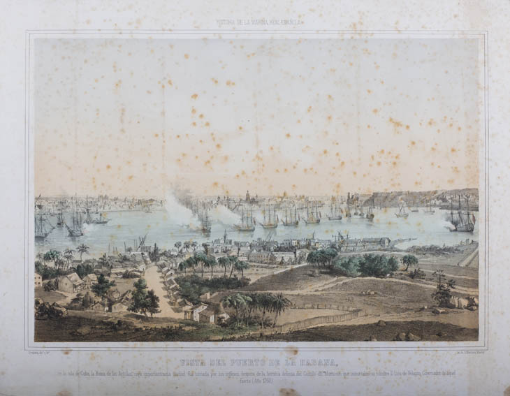 | Description | Representación del puerto de la habana siendo sitiado por una flota inglesa en 1762. En la obra se observan varios navíos en la bahía de la Habana, con el castillo del Morro al fondo junto a parte de la ciudad y en primer plano otra parte de la misma ciudad. Grabado de Vicente Urrabieta y Ortiz, quien en su momento fue considerado en España como uno de los ilustradores más efectivos del país. |