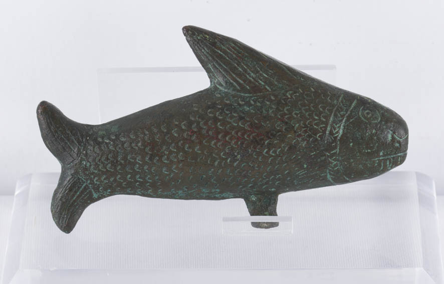 | Description | Escultura de pequeño tamaño realizada en bronce durante el Periodo Tardío (circa 664-30 a.C.) de la cultura egipcia. Representa un pez y, por su apariencia, probablemente se trate de una especie de siluro, Schilbe sp., que se caracteriza por tener una larga espina dorsal con la que se defiende de sus depredadores. Habita en los fondos de los ríos, aunque puede subsistir en charcas de hasta 2 cms. de profundidad, y es activo principalmente de noche. Todo esto le proporcionaba una reputación de ser un pez poderoso, misterioso y temido, convirtiéndose en la representación de la diosa Hatmehit que es la diosa pez, o señora de los pescados, la que preside la Crecida y, por lo tanto, con el Nilo. |
