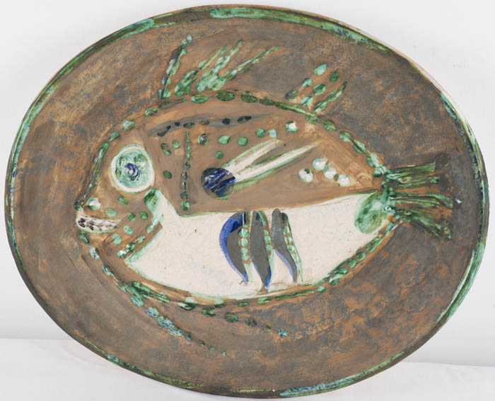 | Description | Obra de 1952 de Pablo Picasso titulada "Pez chine" o "Pez chinesco". Es una fuente ovalada cóncava realizada con pasta de loza blanca. En su interior aparece representado un pez en relieve y está pintado con engobes parcialmente vidriados. De esta obra se realizaron una tirada de 200 copias. |