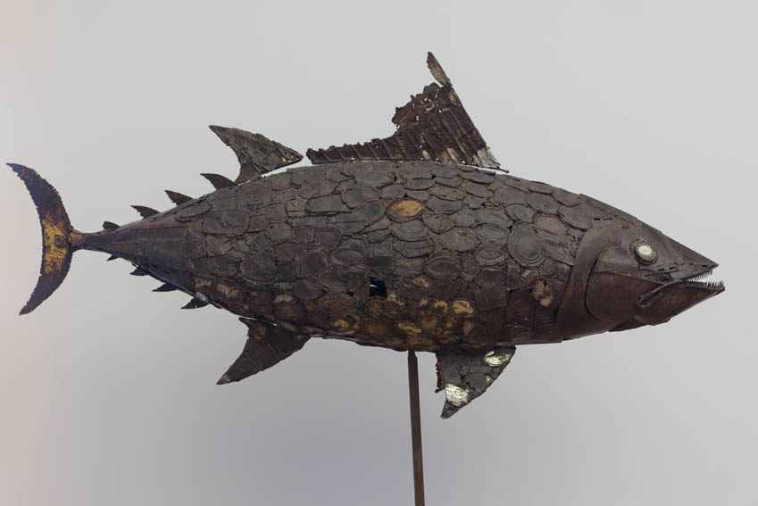 | Description | Escultura con forma de atún hecha con latas de conservas de pescado. Ha sido realizada con materiales encontrados en las playas de Fuerteventura, después de realizar un trabajo de varios meses de recogida de basuras en la costa norte, en la zona de Majanicho. Se hizo en el 2009 y es obra del grupo Skeleton Sea, formado por cuatro artistas preocupados por la salud del medio ambiente. Muchas de sus obras se relacionan con el mundo marino. Al encontrar tantas latas en las costas y amontonarlas surgió la idea de crear una escultura con los desechos. Además, las noticias de la sobrepesca del atún rojo, el poco interés por parte del público sobre este tema que afecta a nuestra sociedad, como la desaparición de una especie marina y fuente de alimento mundial les hizo crear y construir esta escultura, con la doble intención de criticar el exceso de basuras en las playas y el exceso de pesca de los caladeros de atún. Fue expuesta en el Urban Art Fair de Munich (se convirtió en una de las piezas más fotografiada de la exposición) y posteriormente se traslado a San Sebastián para su exhibición en el acuario. |