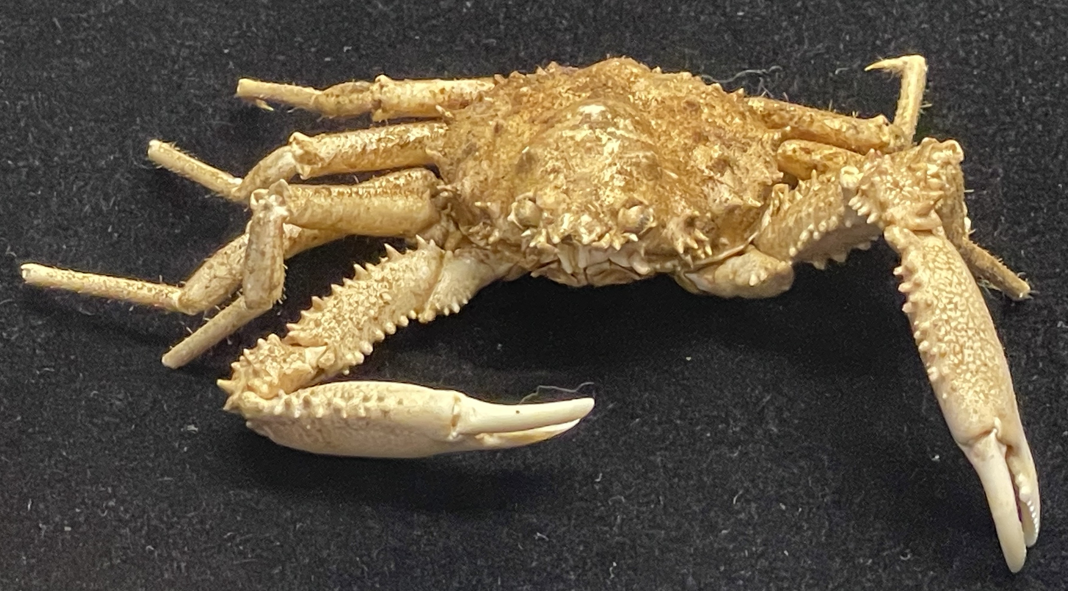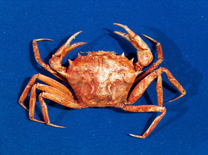| Description | Este crustáceo de pequeño tamaño, posee dos largas pinzas, su cuerpo es más ancho que largo y está repleto de pequeñas espinas. Tienen una coloración pardo-rojiza con zonas amarillentas. Vive en fondos blandos profundos del Atlántico norte, Mar Caribe y del Mar Mediterráneo. |