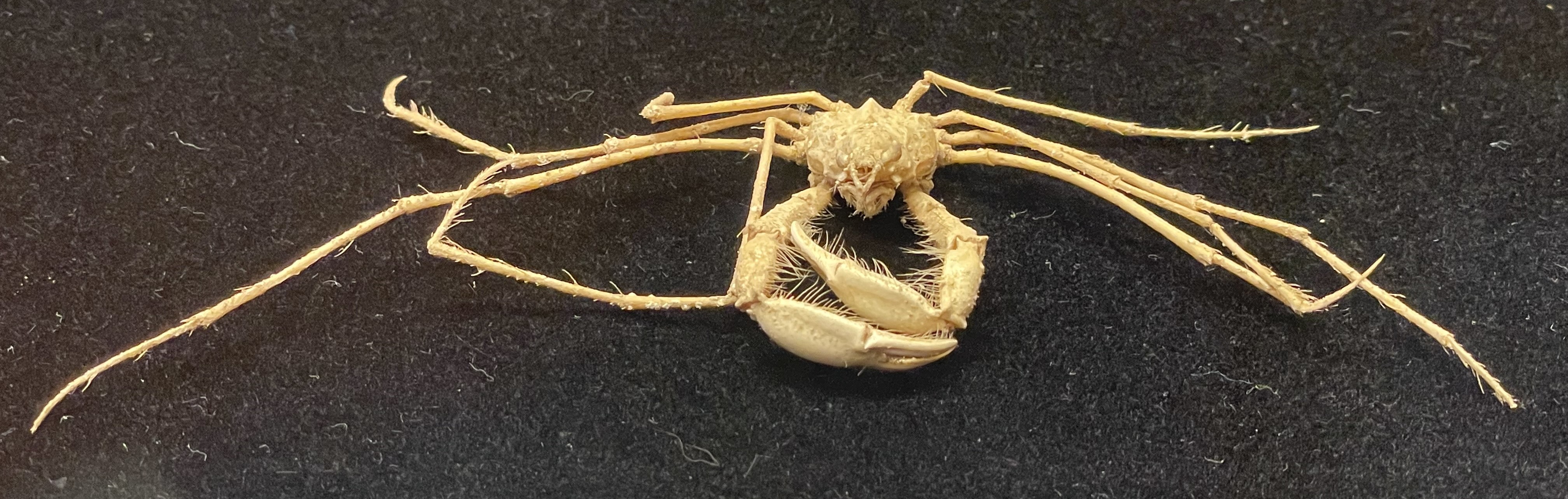 | Description | Este crustáceo recibe el nombre común de cangrejo araña nariguda, ya que su aspecto con largas patas recuerda al de las arañas y, además, su rostro es muy alargado. Es de pequeño tamaño, con el cuerpo triangular y una coloración amarillenta. Vive en fondos de arena o roca de hasta 50 metros de profundidad del Mar Mediterráneo. |
